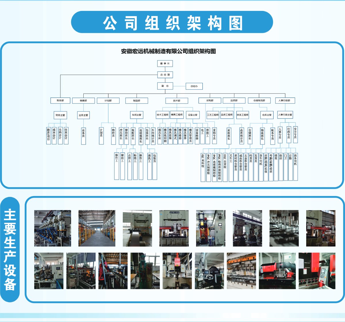 公司擁有大、中、小型沖壓及焊接機(jī)械設(shè)備近100余臺(tái)套,其中630T-1200T大臺(tái)面架框液壓機(jī)(移動(dòng)工作框臺(tái)面)5臺(tái),氣動(dòng)100T-250T沖床20余臺(tái),63T壓力沖床10臺(tái),25T-40T壓力沖床20余臺(tái),315T液壓機(jī)4臺(tái),300T液壓機(jī)4臺(tái),日本松下350-500電焊機(jī)20臺(tái),電焊機(jī)、二氧化碳?xì)怏w保護(hù)焊機(jī)、氬弧焊機(jī)合計(jì)10臺(tái),大小自動(dòng)手動(dòng)剪板機(jī)5臺(tái),維護(hù)設(shè)備車(chē)床、銑床、刨床、磨床、搖臂轉(zhuǎn)床等11臺(tái),引進(jìn)進(jìn)口機(jī)械手臂,實(shí)現(xiàn)全自動(dòng)線生產(chǎn),引進(jìn)空調(diào)面板全自動(dòng)生產(chǎn)線和噴涂生產(chǎn)線可供大中型企業(yè)鈑金制品零部件配套產(chǎn)品的加工。